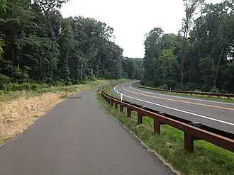 The US 202 Parkway Trail was planned as part of the US 202 parkway, a realignment of US 202 between Montgomeryville and Doylestown. The plans originally called for a freeway but were scaled back to a parkway in 2005 after funding for the road was cut.[1][3] Construction on the US 202 parkway began in November 2008 for the section between PA 63 and PA 463.[4] In January 2010, construction started for the section of the US 202 parkway between PA 463 and PA 611.[5] The US 202 parkway and the US 202 Parkway Trail were opened on December 3, 2012.[6][7] The US 202 Parkway Trail will have future connections to the Power Line Trail and the Neshaminy Creek Trail, the latter trail which will connect to the East Coast Greenway.[2]