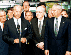 Senator Biden accompanied President Bill Clinton and other officials to Bosnia and Herzegovina in December 1997.