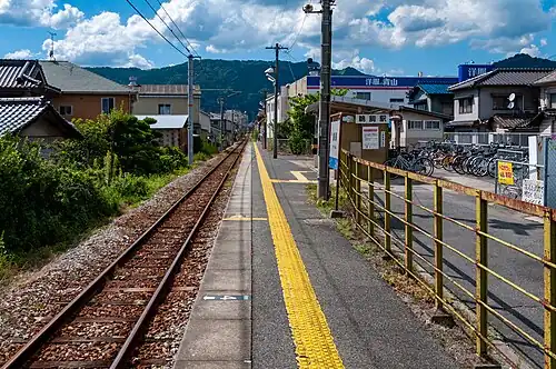 The station consists of one side platform serving a single-bi-directional track. These is no station building and the station is unattended. An automatic ticket vending machine is installed in the waiting area on the platform.[2]
