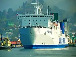 UkrFerry Shipping Company (Ukrainian: СК Укрферрі) is a ferry operator at the Black Sea, with ferry services serving Ukraine, Bulgaria, Turkey, and Georgia. The company's fleet consists of four ship type RORO and ROPAX generally with 34,000 DWT.