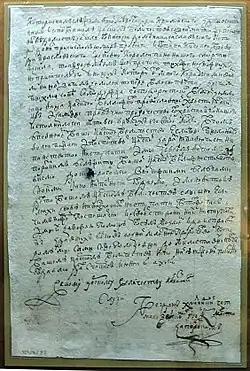 Ukrainian skoropys (Ukrainian: український скоропис) or Cossack skoropys (Ukrainian: козацький скоропис) is a type of Cyrillic handwriting script that was widely used in documents of the Cossack Hetmanate in the 16th to 18th centuries.[1] "Skoropys" means "fast-writing style" in Ukrainian.[2]