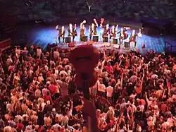 On Tuesday 18 August 2009 the UOGB performed a concert as part of the BBC Proms 2009 Season at London's Royal Albert Hall, where they were the fastest selling late night prom in history.[7][23][34] The concert included a version of Beethoven's Ode to Joy in which at least 1,000 audience members with ukuleles participated.[15][35] The performance was broadcast live on BBC Radio 3 and received critical acclaim. They returned to the Albert Hall in 2012.[8][21][9] Ben Rouse joined the UOGB in 2014. For their 2014 tour of China, the British Council described the UOGB as an orchestra "celebrated for its rapport with audiences, and eliciting a joyous feel-good reaction".[26] In 2016 the UOGB entertained Elizabeth II at Windsor Castle at a private party to celebrate the queen's 90th birthday.[9]