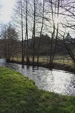 Ulfenbach is a river of Hesse and Baden-Württemberg, Germany. At its confluence with the Finkenbach in Hirschhorn, the Laxbach is formed.