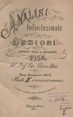 - ^ (English translation) In 20th-century analysis, the theory of function of real variables (inaugurated in 1878 by a book written by Dini), has been widely developed in relation to the classical calculus operations..