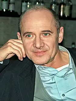 He then turned to acting, and studied at the Theaterhochschule "Hans Otto" Leipzig from 1975 to 1979.[7] He appeared in his first professional stage role in 1979, as Lyngstrand in Ibsen's Fruen fra havet (The Lady from the Sea) at the Städtisches Theater in Karl-Marx-Stadt (now Chemnitz). He followed this by appearing in a production of Macbeth by playwright and director Heiner Müller at the Volksbühne in East Berlin.[3]