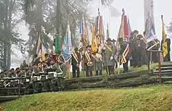 The Ulrichsberg gathering (German: Ulrichsberggemeinschaft) is an Austrian German nationalist organisation founded in Klagenfurt in 1953 to memorialise Carinthian soldiers in World War I, the Austro-Slovene conflict in Carinthia, and World War II. Its full name is Ulrichsberggemeinschaft / Heimkehrer- und Europagedenkstätte ("Ulrichsberg gathering / Returning soldiers' and Europe memorial"): this indicates, first, the annual meeting of war veterans and their families which it organises at Ulrichsberg mountain near Klagenfurt; and, second, the war memorials to returning soldiers (Heimkehrer) which it maintains on the Ulrichsberg and in Klagenfurt. The organisation is considered a meeting ground of far-right extremists and unrepentant Nazis, such as former members of the Waffen-SS.