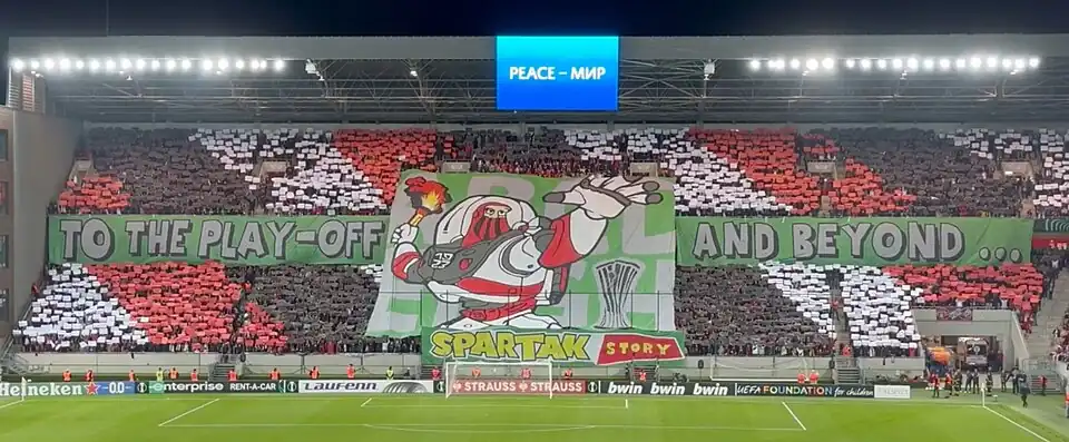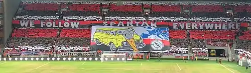 Ultras Spartak are well known for their choreography,[20] it takes all night to prepare an all stand choreo, sometimes even three days. It is produced by volunteers in their free time.[21]