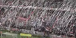 Ultras Spartak hold a fierce rivalry with Ultras Slovan, the main fan group of ŠK Slovan Bratislava. Both Ultras have been banned multiple times in Traditional derbys.[13][14] In a match against Slovan in 2021, there was a full blown fight on the pitch between both ultras, with the game being cancelled and postponed.[15][16] As a result of this incident, Spartak would have to play the next three home matches without the Ultras, with entry only allowed for children under 15 years of age.[17]