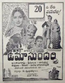 Uma Sundari is a 1956 Indian Telugu-language film, produced by M. Somasundaram under the Jupiter Pictures Pvt. Ltd. banner and directed by P. Pullayya. It stars N. T. Rama Rao, Sriranjani Jr. and music composed by Ashwathama.[1]