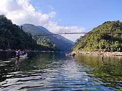 The Umngot River, also known as the Dawki River and Wah Umngot, is a river which flows through Dawki, a small town located at the bottom of the Jaintia Hills in West Jaintia Hills district in the Indian state of Meghalaya.[1][2] The town is relatively busy and serves as a trade route between India and Bangladesh. The river is known for its cleanliness and transparent water with a visible riverbed.[3]