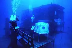 MarineLab was used as an integral part of the "Scott Carpenter, Man in the Sea" Program.[34] In 2018 the habitat was retired and restored to its 1985 condition and is on display to the public at Marine Resources Development Foundation, Inc. Key Largo, Florida.[33]