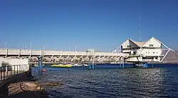 The first part of Eilat's Coral World Underwater Observatory was built in 1975 and it was expanded in 1991 by adding a second underwater observatory connected by a tunnel. The underwater complex is accessible via a footbridge from the shore and a shaft from above the water surface. The observation area is at a depth of approximately 12 m.[54]