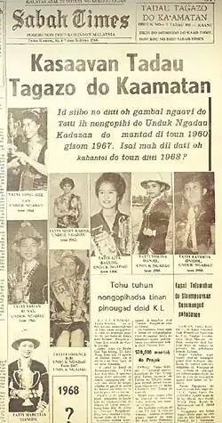 - ^ a b c Doksil, Mariah (14 May 2016). "Sabah's unique beauty pageant". The Borneo Post. Retrieved 30 April 2025 – via PressReader.