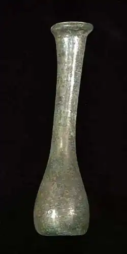 Some graves contain multiple unguentaria, in one case numbering 31 of the fusiform type, while others hold a single example.[50] Grave gifts sometimes consisted of nothing but unguentaria.[51] Neither the piriform unguentaria nor thin blown-glass vessels occur in burials before the Augustan period.[52] In Mainz, unguentaria are the most common grave gifts made of glass during the first half of the 1st century; in Gaul and Britain, glass unguentaria appear as containers for scented oils in both cremations and inhumations in this period and continuing into the 3rd century, but disappear by the 4th.[53]