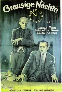 Unheimliche Geschichten (lit. Uncanny Stories), also known as Grausige Nächte[4] (lit. Nights of Terror) or Eerie Tales, is a 1919 German silent anthology film directed by Richard Oswald and starring Conrad Veidt, Reinhold Schünzel, and Anita Berber.[3] The film is divided into five segments: "The Apparition" (based on a story by Anselm Heine), "The Hand" (based on a story by Robert Liebmann), "The Black Cat" (based on the short story by Edgar Allan Poe), "The Suicide Club" (based on the short stories by Robert Louis Stevenson) and "Der Spuk" ("The Spectre", an original work by Oswald).[1][3]