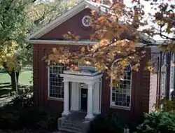 Historically, the Union-Philanthropic Literary Society inhabited the top floor of Winston Hall in the Patrick Henry Room.[14] Later, it met in both Cushing Hall and McIwaine Hall; the latter burned in a fire in 1957 while the society was still occupying its third floor.[15] The society raised the funds to restore Hampden-Sydney's The Birthplace (circa 1756), which the society used as a museum and meeting place from 1961 until it outgrew the space in 1992.[3][13][16] The society currently meets in its Hall at the Schaeffer House.