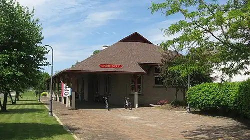 Union City is a historic train station located at Union City, Randolph County, Indiana. It was built in 1876, and is a one-story, rectangular, brick building with limestone trim. It measures 92 feet long and has a modified hipped roof. The building features wide overhanging eaves in the Prairie School style and Stick Style / Eastlake movement influences. It was remodeled between 1925 and 1930.[2]: 2
