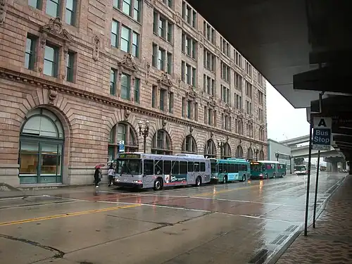 Across the street is the Grant Street Transportation Center.[19] It serves as an intercity bus station for: