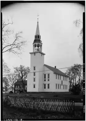 The Unitarian Meetinghouse is a historic church at the junction of Connecticut Routes 169 and 6 in the village center of Brooklyn, Connecticut. Built in 1771, it is one of a small number of pre-Revolutionary church buildings in the state, and distinctive for having a sufficiently complete documentary record to support a complete restoration. It retains a configuration distinctive of that period, with its main entrance on the long side of the building, and the pulpit opposite. The bell tower with steeple is located at one of the short ends, suggestive of the 19th century change to place the entrance there as well.[2] The building was listed on the National Register of Historic Places in 1972.[1]