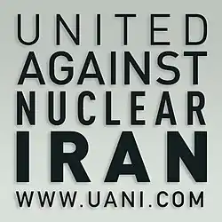 United Against Nuclear Iran (UANI) is a bipartisan, non-profit advocacy organization based in the United States. Its stated objective is to "prevent Iran from fulfilling its ambition to become a regional super-power possessing nuclear weapons."[3] Along with other advocacy campaigns, the organization leads efforts to pressure companies to stop doing business with Iran as a means to halt the Iranian government's nuclear program and its alleged development of nuclear weapons.