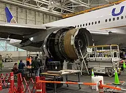 ![]() Inboard side of the right engine of N772UA after the incident | |