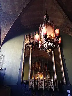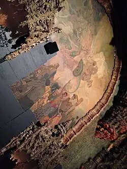 The theatre was designed by the architect C. Howard Crane of the firm Walker & Eisen for the United Artists film studio formed by D. W. Griffith, Charlie Chaplin, Douglas Fairbanks and Mary Pickford.[6] The theater, a classic movie palace, was one of many constructed by United Artists and served as a major premier house. The theater occupies three floors of the 13-story building and has a 2,214-seat auditorium.[7] Like many movie theaters, the seat rows sink in toward the front of the orchestra section, so ticket holders there must look up at the stage.[8]
