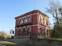 Customs activities took place in the collector's home until the mid-19th century when collector Sylvanus B. Phinney secured congressional funding to erect a fireproof, brick and cast iron customshouse/post office in 1855. Ammi Burnham Young, Supervising Architect of the Treasury Department, designed the two-story, Renaissance Revival style building with an advanced cast-iron structural system in 1856. The customshouse occupied the second level until 1913, when Barnstable ceased to be a customs district in its own right. The first level continued to serve as a post office until 1958. The federal government deeded the building and grounds to the town of Barnstable in 1960 for use as a historical museum, which opened that same year. The building is dedicated to Donald G. Trayser, a local Barnstable historian, former editor of The Barnstable Patriot, former Clerk of the Barnstable Superior Court, and editor of Barnstable - Three Centuries of a Cape Cod Town, which was published in 1939. For many years, the historic building housed the collection of the Barnstable Historical Society. After the Society moved out, the customhouse was restored by a group of dedicated local residents and reopened as the Coast Guard Heritage Museum at the Trayser in July 2005.[2]