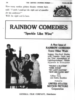 The United States Motion Picture Corporation also released Rainbow Comedies, one-reel comic films distributed by the General Film Company, in 1918 and 1919.[3] These films often starred Lillian Vera and Eddie Boulden and were directed by Joseph A. Richmond.