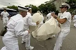 The midshipmen are next transported by bus to the midshipman dormitory, Bancroft Hall, where they meet their Plebe Summer Cadre and must transport their new gear and uniforms to their dorm rooms. They are shown how to mark and stow all equipment and spend considerable time arranging their rooms appropriately. Midshipmen must also formally sign their "Oath of Office" papers, which commit them to naval service.
