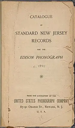 - ^ Catalogue of Standard New Jersey Records. Newark, N.J.: United States Phonograph Co. c. 1894.