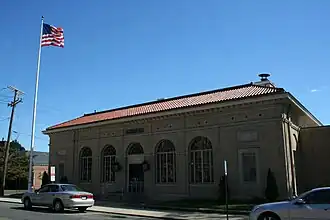 The U.S. Post Office-Naugatuck Main, also known as Naugatuck Main Post Office, is a historic former post office building at Church and Cedar Streets in Naugatuck, Connecticut. Designed in 1915 and completed the following year, it is one of the most architecturally sophisticated post office buildings in the state. It is set among a cluster of civic buildings designed by McKim, Meade & White.[2] The building was listed on the National Register of Historic Places in 1986.[1] Naugatuck's current post office is located at 170 Water Street.
