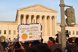 A series of ongoing protests supporting abortion rights and anti-abortion counter-protests began in the United States on May 2, 2022, following the leak of a draft majority opinion for the U.S. Supreme Court case Dobbs v. Jackson Women's Health Organization, which stated that the Constitution of the United States does not confer any reproductive rights, thus overturning Roe v. Wade and Planned Parenthood v. Casey.[1][2][3] On June 24, 2022, the Supreme Court officially overturned Roe and Casey in Dobbs, resulting in further protests outside of the U.S. Supreme Court building and across the country, eventually to major cities across the world both in favor of and against the decision.[4]