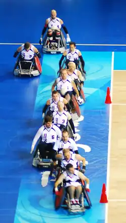 The United States national wheelchair rugby team represents the United States in international wheelchair rugby. The USA is the most successful team in international competition, winning medals in all five Paralympic tournaments it has entered, coming away with two golds.[1]