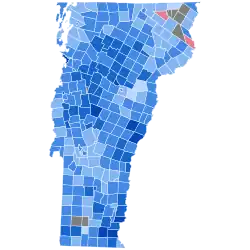 To date, this is the last time that the towns of Baltimore, Belvidere, Benson, Berkshire, Bloomfield, Brighton, Brownington, Brunswick, Canaan, Charleston, Clarendon, Concord, Coventry, Danby, Derby, Eden, Fair Haven, Franklin, Granby, Groton, Guildhall, Highgate, Holland, Ira, Irasburg, Lowell, Lunenburg, Newport, Norton, Orange, Readsboro, Richford, Searsburg, Sheldon, Stamford, Sutton, Topsham, Troy, Victory, Wells, West Rutland, and Williamstown voted Democratic.
