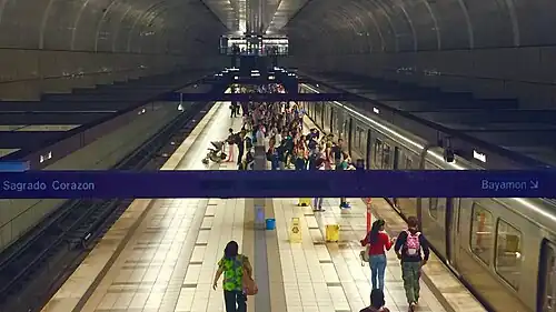 Universidad is a rapid transit station in San Juan agglomeration, Puerto Rico. It is located between Río Piedras and Piñero stations on the only line of the Tren Urbano system, in the Río Piedras area of the city of San Juan. The station is named after the University of Puerto Rico campus which it serves. Trial service ran in 2004; regular service started on 6 June 2005.[1]