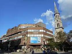UQAM's campus was designed by Dimitri Dimakopoulos and is located in downtown Montreal in the borough of Ville-Marie, with most of its buildings in the Quartier Latin neighbourhood near the Berri-UQAM Metro station and the newer Complexe des sciences Pierre-Dansereau near Place des Arts. The university is also involved in the troubled Îlot Voyageur project, a 13-storey student residence and intercity bus terminal, but has had to scale back its involvement due to financial problems.[12] In September 2013, the university announced that it had acquired the National Film Board of Canada's former CineRobotheque facility for its communications faculty.[13]