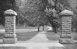 University Avenue is a downtown street in Lewisburg, Pennsylvania, United States. It runs for around 0.19 miles (0.31 km), from St. George Street in the north to Loomis Street in the south. It was the original main access road to the University at Lewisburg (Bucknell University today), located on the northern side of the campus, and still leads to its former main entrance, punctuated by the 1905 Memorial Gateway.[1] The Grove, a wooded area, stands inside the gates.[2]