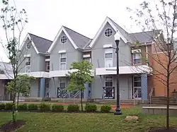 The Student Neighborhood also contains several high-density living areas, including the Garden Apartments, the Lawnview Apartments and the Campus South, a high-rise living complex for sophomores. In 2004, the ArtStreet complex opened, intended as a combined living-learning space. It includes housing for 56 students, as well as a cafe, an amphitheater, rehearsal rooms, several activity rooms and gallery spaces, and a new studio for the campus radio station, WUDR.[18] The area was also home to the McGinnis school house, which was acquired in 1982 and renamed the McGinnis Center; it is used as a central point of contact for residents.[3] In 2017 McGinnis Center was demolished to make room for the addition of an $11 million apartment style building.[19] The building is set to open for the 2018 Fall semester.