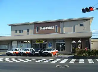 Unshū-Hirata Station (雲州平田駅, Unshū-Hirata-eki) is a passenger railway station located in the city of Izumo, Shimane Prefecture, Japan. It is operated by the private transportation company, Ichibata Electric Railway.[1] It is located adjacent to the main depot and railyard for the Ichibata Electric Railway.