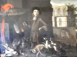 John II Moore (1636-1700), son and heir, who laid down two similar ledger stones in St Matthew's Church, Cheriton Fitzpaine, one to his mother Gertrude Courtenay (1592-1666) and another to his first wife who died 5 years later in 1671. He married twice: