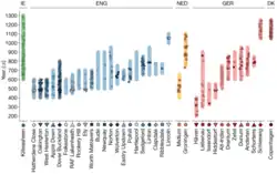 - Gretzinger, Joscha; Sayer, Duncan; Justeau, Pierre; Altena, Eveline; Pala, Maria; Dulias, Katharina; Edwards, Ceiridwen J.; Jodoin, Susanne; Lacher, Laura; Sabin, Susanna; Vågene, Åshild J.; Haak, Wolfgang; Ebenesersdóttir, S. Sunna; Moore, Kristjan H. S.; Radzeviciute, Rita (6 October 2022). "The Anglo-Saxon migration and the formation of the early English gene pool". Nature. 610 (7930): 112–119. doi:10.1038/s41586-022-05247-2. ISSN 0028-0836. PMC 9534755. PMID 36131019.