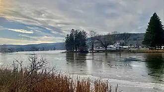 ![]() Partially frozen Upper Little York Lake as seen from Interstate 81, Preble, New York | |