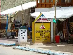 ![]() The village of Upshi and road junction at the northern end of the Leh Manali Highway | |