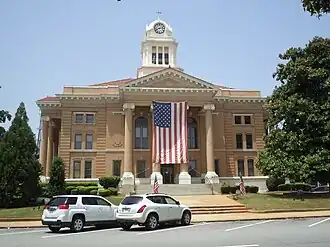 Upson County Courthouse is a historic courthouse in Thomaston, Georgia, the county seat of Upson County, Georgia. It was built in 1908 at a cost of $50,000 in the Neoclassical style. It uses cream-colored brick and has Ionic brick columns with high bases. It has a three-stage clock tower. Segmental arched windows alternate with rectangular ones.[2]