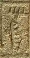 The Plaque of Ur Nanshe is a limestone plaque currently located at the Louvre Museum that honors Ur Nanshe. The figures displayed are the king and his court standing rigid and wide eyed, paying homage to the god Nanshe. They are dressed in kaunakes with their hands clasped together over their chest. Hierarchical scale of the king and the use of cuneiform on the figures to identify them[21] are employed as in the Perforated Relief.