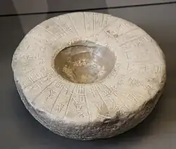 Ur-Nanshe door socket with inscription: "Ur-Nanshe, King of Lagash, son of Gunidu, the son of Gurmu..." and a list of the temples he built.[15] Louvre Museum.