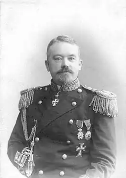 Børresen was honored with a number of Norwegian and other awards for his work.[11] He was named a knight of the Order of St. Olav in 1900. In 1910 he was elevated to a commander with star in the same order for military merit. Børresen was awarded the 1906 Coronation Medal in silver and the King Haakon VII 1905–1930 Jubilee Medal. Other awards include the grand cross of the Royal Order of Cambodia, commander of the Order of the Dannebrog, commander of the British Royal Victorian Order, commander of the French Legion of Honour, the Prussian Order of the Crown, commander of the Swedish Order of the Sword, and the Tunisian Order of Glory (fourth class).