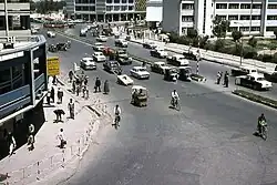 In September 1952, there were two significant policies promulgated at an urban development conference: "construction of key cities in co-ordination with the national economic development programme" and "establishment of urban planning structure to strengthen city development".[9] These policies influenced China's urban planning significantly and at the same time were clearly defined by the main direction of the state – centralised economic and industrial development. During the First Five-year Plan (1953–58), the nation determined to develop 156 national key projects and 8 key industrial based cities.[6] In this period, vast physical development projects such as industrial bases, community facilities and housing for workers were established to achieve national needs and goals. All of these projects were carried out with the aid of the experts from the Soviet Union, particularly in terms of urban economic development and physical urban design. Urban planning at that time was mainly based on Soviet planning principles and the model of the post-war Soviet planning practice. Soviet-style communist planning concentrated on "formalistic street patterns and grand design for public buildings and monuments, huge public squares, and the predominance of master plans".[10] The role of communist planners during this period was to focus on location selection of factories and industrial plants, arrangement of service facilities, design of the layout of industrial towns, functional division of urban land use zones and development of residential districts.[6][7] Historic preservation was not a priority during this period of development. For example, Mao Zedong allowed Beijing's city walls to be demolished despite their historical significance in order to make room for other uses.[11] The bricks from the walls were used in new development projects ranging from homes to a subway system. By the end of 1959, there were 180 cities, 1400 towns and more than 2,000 suburban residential settlements that had been project plans prepared under communist planning.[7]