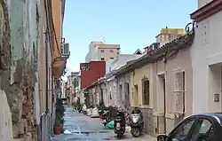 On the west bank of the Guadalmedina, the urban suburb and industrial zone historically housed workers, laborers, and other working-class residents, a pattern that persisted into the 20th century. The exception is El Perchel, an Arab suburb predating the Reconquista. The rural exodus, as in much of Spain, began in the late 1950s, replacing orchards, dairies, and industrial ruins with working-class neighborhoods populated by rural migrants drawn by job opportunities during the tourism and industrial boom. The result was poorly planned urbanism driven by speculative business interests, exploiting cheap land for maximum profit.[3] Until the 1990s, many of these areas featured traditional corralones, some of which still survive in El Perchel and La Trinidad.[1]