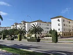 During the plan, neighborhoods built included Generalísimo Franco de Carranque (1950), Canódromo housing group (1953), Sixto (1954), José Antonio Girón (1955), Santa Julia (1957), Portada Alta (1957), 26 de Febrero, 4 de Diciembre (1959), and the housing groups José Solís Ruiz (1960), Herrera Oria (1962), and Virgen del Carmen (1964). These shared rural aesthetic principles, functioning as self-sufficient units, forming a new western urban ring.[29]